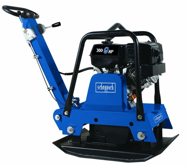 Scheppach Reversierbare Rüttelplatte HP3000SVerdichten sie Sand, Kies und weichen Boden mit dieser schweren und robusten Rüttelplatte. Reversierbare Rüttelplatten verfügen neben einem Vorlauf auch über einen Rücklauf, welcher über den Bedienhebel gesteuert werden. Das Rüttlergehäuse ist mit der Grundplatte verschraubt. Grundplatte aus hochfestem Stahl mit abgerundeten Kanten Selbstreinigungsplatte Sehr wendig und einfach zu Bedienen Verdichtungsdruck: 30500 N Leistungsstarker 9,0 PS Motor Hohe Vorlaufgeschwindigkeit – zur Erhöhung der Arbeitsleistung Inklusive Fahrvorrichtung, zum Transport auch durch eine Person Inklusive Gummimatte für PflasterarbeitenMaße Plattengröße: 730 x 450 mm Abmessungen L x B x H 106 x 72 x 98 cmLieferumfang 1 x Rüttelplatte HP3000S 1 x Gummimatte