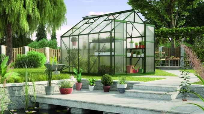Freiraum zur Entfaltung: für hoch gewachsene Pflanzen. Gärtner haben an dem Uranus viel Freude, weil genug Platz für beide da ist. Das eigene Gewächshaus – der Traum eines jeden Pflanzenliebhabers.Das Uranus ist ein Modell für den fortgeschrittenen Gärtner. Es ist in vier verschiedenen Größen mit den Grundflächen von 6,7 bis 11,5 m2 und in drei Farben erhältlich: Aluminium eloxiert, Smaragd oder Schwarz (pulverbeschichtet). Mit der außergewöhnlichen Firsthöhe von 246 cm und der Traufenhöhe von 151 cm bietet das Uranus auch hohen Pflanzen viel Raum. Bei der Verglasung kann zwischen Einscheibensicherheitsglas (ESG) in 3 mm Stärke und Hohlkammerplatten (HKP) gewählt werden. Die Hohlkammerplatten gibt es in einer Stärke von 4 und 6 mm. Sie bestehen aus UV-stabilisiertem Polycarbonat (PC). Die Dachfensterverglasung der Modelle mit HKP hat eine Stärke vom 4 mm. Hohlkammerplatten bieten durch ihre höhere Isoliereigenschaft mehr Vorteile und Funktionalität als Glas. Sie sind bruchsicherer und leichter. Die leicht milchige Oberfläche bricht das Licht, sodass meist kein Abschattieren notwendig ist. Einscheibensicherheitsglas garantiert stattdessen eine hohe Lichtdurchlässigkeit und besticht durch die „klassische“ Glasoptik. An sonnigen, heißen Tagen sollte das Glas jedoch abschattiert werden, um die Pflanzen vor Verbrennung zu schützen. Gehärtetes Glas bricht nicht scharfkantig und sorgt somit für mehr Sicherheit. Das Modell hat eine leichtgängige, kugelgelagerte Doppelschiebetür mit einer Breite von 122 cm und einer Höhe von 191 cm und ein kittloses Verglasungssystem mit rostfreien Glasfederklammern. Jedes Modell ist serienmäßig mit zwei oder vier Dachfenstern und Regenrinnen ausgestattet.