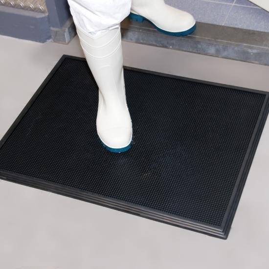 100% Naturgummimischung Die Matte kann bis zu 4½ Liter Desinfektionsmittel aufnehmen. Erhältlich in 60 cm x81 cm und passt in die meisten Eingänge Empfohlene Anwendung Desinfizierende Eingangsmatte Eigenschaften Populäre Mattengröße, die in die meisten Eingänge passt Saugnäpfe an der Unterseite sorgen dafür, dass die Matte nicht auf dem Boden verrutscht Hergestellt aus 100% robustem Natur Gummi, resistent gegen zahlreiche Chemikalien und beständig gegen Temperaturunterschiede