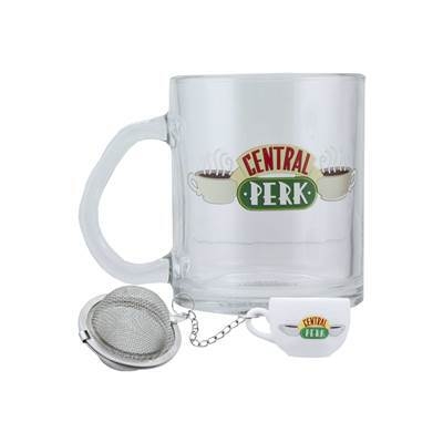 Ein leichter Kick Was tun Sie, wenn Sie unbedingt zu Ross, Rachel und der Clique ins Central Perk gehen wollen, aber der Kaffee Sie zu nervös macht? Sie nehmen dieses Friends-Teeservice Central Perk, natürlich, und machen sich auf den Weg ins Café, um eine Plauderstunde abzuhalten. Dieses zweiteilige set ist so niedlich, dass selbst der am meisten von Java besessene Freund in Ihrer Clique zum Tee übergeht. Er ist auch perfekt für einen kalten, verregneten Abend, an dem du mit deinen besten Freunden einen Friends-Marathon schaust! Lustige Details Diese set enthält eine Teetasse aus Glas transparent mit dem Logo Central Perk, sowie eine vergitterte Teekugel, deren eines Ende eine Mini-Keramiktasse ist. Einfach süß!