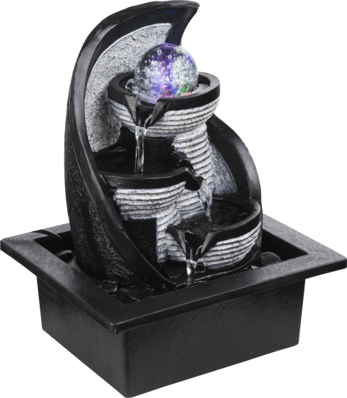 Der Tischbrunnen Albert (knapp 26cm hoch) mit einem interessanten und neutralen Design könnte zum Mittelpunkt in Ihrem Bereich werden. Der graue aus Kunststoff bestehende Zimmerbrunnen hat eine inkludierte Pumpe und bietet mit den vier eingebauten LED Leuchtmitteln das passende Licht, welches sich auch farblich verändern lässt. In der gleichen Produktserie finden Sie weitere Brunnen dieser Größe.
