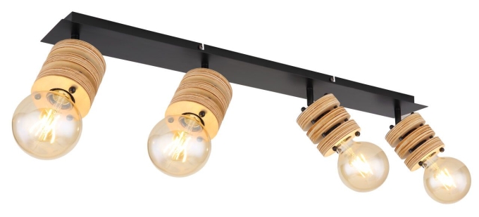 Strahler Metall schwarz matt, MDF braun, LxBxH: 800x88x175mm, exkl. 4x E27 40W 230V