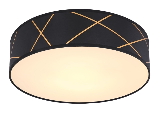Deckenleuchte Metall schwarz matt, Textil schwarz, Acryl goldfarben, ø: 400mm, H: 110mm, inkl. LED 24W 230V, 2800lm Source, 1550lm Output, 3000K