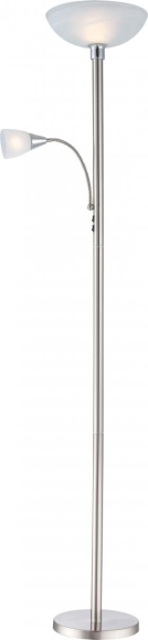 Globo BLADE Stehleuchte Chrom nickel matt, Glas satiniert, inkl. LED LM 10600/10646, Schalter, D:300, H:1780, inkl. 1xE27 LED 9W 230V, 810lm, 3000K, 1xE14 LED 3W 230V, 300lm, 3000K