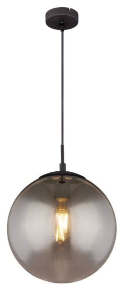 Diese schwarze Schönheit BLAMA besticht durch ihr elegantes Design. Das rauchfärbige Glas(Ø 30cm) hängt 120cm in den Raum. Dank der E27 Fassung wird eine freie Leuchtmittelwahl möglich. Diese Hängeleuchte ist hervorragend für Schlaf- und Wohnzimmer geeignet. Andere Modelle dieser Serie komplettieren Ihren Wohnraum.