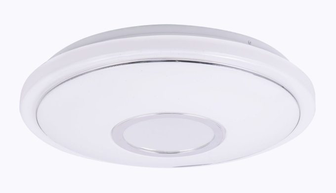 Deckenleuchte Metall weiß, Acryl opal sparkle, Chromring, dimmbar, Farbwechsler, Farben fixierbar, SmartLight, Fernbedienung, Batterie inkludiert 2x AAA, kompatibel mit Smart Home und Alexa, ø: 400mm, H: 65mm, inkl. LED 16W 230V, 1280lm Source, 1040lm Output, CCT 3000-6000K, inkl. RGB LED 3W 230V, bunt