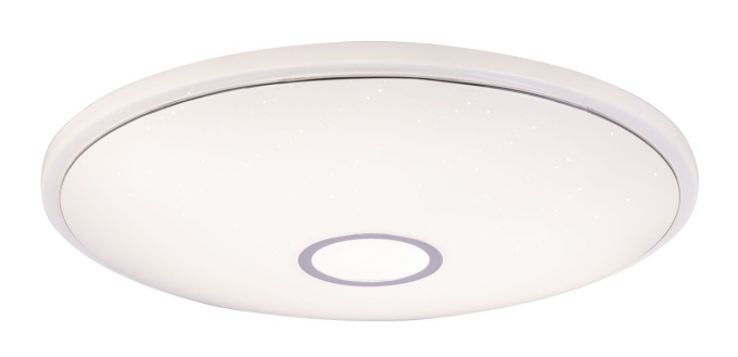 Deckenleuchte Metall weiß, Acryl opal sparkle, Chromring, dimmbar, mehrere Stufen über Wandschalter, Farben fixierbar, Memoryfunktion, Nachtlicht, Timer, Fernbedienung, Batterie inkludiert 2x AAA,, ø: 680mm, H: 100mm, inkl. LED 30W 230V, 320-3200lm Source, 260-2600lm Output, CCT 2700-6500K