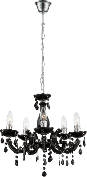 Luster Metall verchromt, schwarz, Acrylkristalle, Kabel PVC grau, ø: 440mm, H: 1280mm, exkl. 5x E14 40W 230V