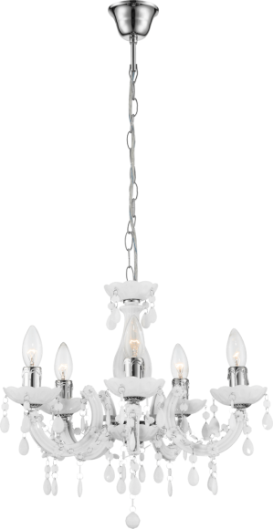 Luster Metall verchromt, weiß, Acrylkristalle, Kabel PVC grau, ø: 440mm, H: 1280mm, exkl. 5x E14 40W 230V