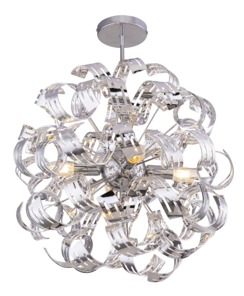 Diese Deckenleuchte (Ø 50cm) bietet durch ihre Arme mit geschwungenen Chrombändern ein Wunderwerk an Romantik. Mit dem verspielten runden Design zieht diese Innenlampe jeden Blick auf sich. Diese Deckenlampe ist mit einer Höhe von 56cm im Innenbereich universell einsetzbar. Durch die freie Wahl des Leuchtmittels (4 x E14/max. 40W) können Sie selbst über Lichtstärke und Lichtfarbe bestimmen. Aufgrund ihrer Langlebigkeit empfehlen wir Ihnen LED Leuchtmittel. Durch andere Modelle dieser Serie können Sie das Bild Ihres Lebensraumes weiter verschönern.