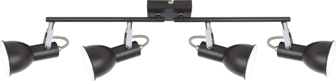 Der braunfärbige (Spot-Innenfarbe: Weiß), metallische Deckenstrahler Fargo bietet vier verstellbare Spots auf zwei beweglichen Armen. Die E14 Fassungen können je nach Wunsch, jedoch mit max. 40W, bestückt werden. LEDs sind hierbei wegen ihrer Stromersparnis und Langlebigkeit hervorragend geeignet. Weitere Wand- und Deckenstrahler der gleichen Produktserie könnten das Bild in Ihrem Wohnbereich abrunden.
