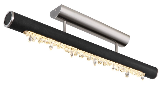 Deckenleuchte Metall Nickel matt, Holz schwarz, Acrylkristalle klar, Memoryfunktion, burned wood, 3 Stufen über Wandschalter 100-40-10%, LxBxH: 800x75x190mm, inkl. LED 15W 230V, 1200lm Source, 680lm Output, 3000K