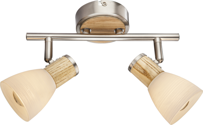 Die Serie Gylfi setzt auf edles Design gemeinsam mit Holzelementen. Auf einer hölzernen Dekorplatte ist eine nickel matte Stange befestigt an dessen Ende jeweils ein Strahler befestigt ist. Der Schirm besteht aus gestreiften Opalglas und passt deswegen sehr gut zum Holz-Stil. Die Lampe hat eine Länge von 25,5 cm und durch die E14 Fassung bleibt es Ihnen überlassen welches Leuchtmittel (max. 40W) Sie benutzen wollen und somit auch die Lichtstärke und Lichtfarbe.