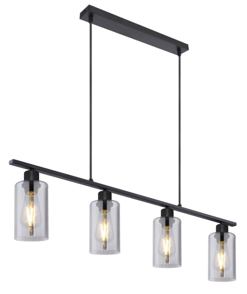 Die Hängelampe der Hadera-Serie aus schwarz-mattem Metall eignet sich dank ihrer länglichen Form wunderbar, um über einen Esstisch montiert zu werden, der dann eine gleichmäßige Ausleuchtung erfährt. Die 98 cm lange Hängeleuchte kann mit vier E27-Leuchtmittel Ihrer Wahl bestückt werden, die dann jeweils umgeben von rauchigem, zylinderförmigen Glas, 1,2 m von der Decke hängen. Dadurch können Sie Lichtfarbe und Helligkeit individuell bestimmen. Mit mehreren Artikeln der Hadera-Serie können Sie das Gesamtbild Ihres Indoor-Bereichs komplettieren.