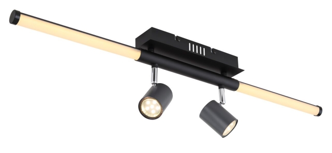 Deckenleuchte Metall schwarz matt, Graphit, Kunststoff opal, Chrom, LxBxH: 804x80x170mm, exkl. LED 10W 230V, 890lm Source, 690lm Output, 3000K, exkl. 2x GU10 35W 230V