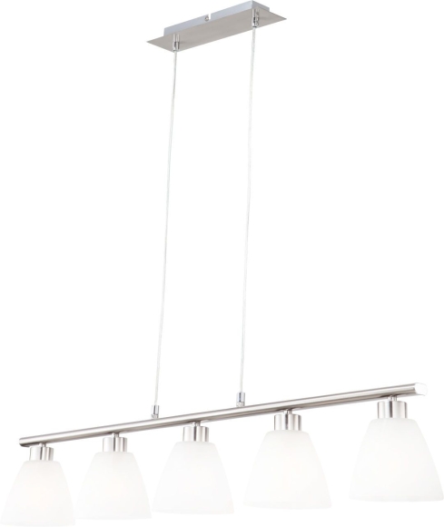Hängeleuchte Metall Nickel matt, Glas, weiß, LxBxH: 930x130x1200mm, exkl. 5x E14 40W 230V