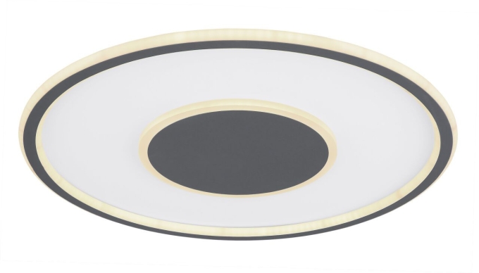 Deckenleuchte Metall weiß, Metall Graphit, Acryl opal, weiß, dimmbar, Farben fixierbar, Memoryfunktion, Nachtlicht, Fernbedienung, Batterie inkludiert 2x AAA, CCT auch über Wandschalter, ø: 550mm, H: 55mm, inkl. LED 46W 230V, 4600lm Source, 2800lm Output, CCT 2700-6000K
