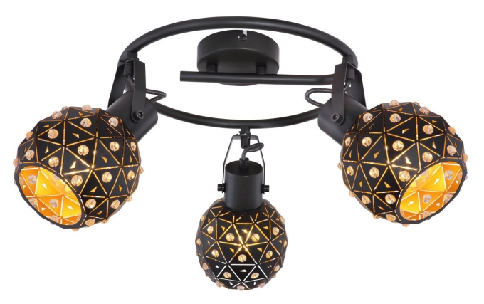 Strahler Metall schwarz matt, Metall schwarz matt, K9 Kristalle klar, Schirme innen gold, ø: 260mm, H: 290mm, exkl. 3x E27 40W 230V