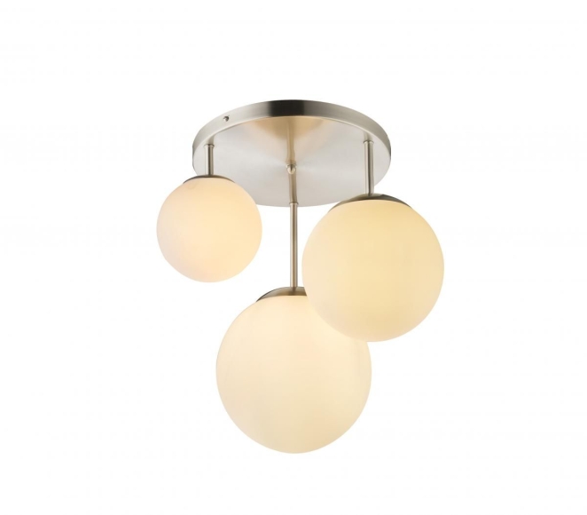 Globo JOEL Deckenleuchte nickel matt, Glas opal weiß, Glaskugel-DM: 1 x 15 cm, 1 x 20 cm, 1 x 25 cm, D:470, H:440, exkl. 2xE27 60W 230V, 1xE27 ILLU 60W 230V