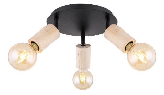 Dieser Deckenstrahler aus der Joseba-Serie (ø 28 cm) ist mit seinem wunderschönen Design aus Holz und schwarz-mattem Metall ein echter Blickfang. Der Strahler kann mit drei E27-Leuchtmittel Ihrer Wahl bestückt werden. Dadurch haben Sie die Möglichkeit Lichtfarbe und Helligkeit nach Ihren Vorstellungen zu bestimmen. Mit mehreren Artikeln der Joseba-Serie können Sie in Ihren Innenräumen für ein stilvolles Ambiente sorgen und das Gesamtbild komplettieren.