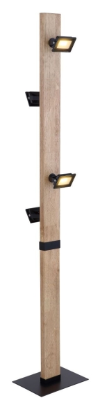 Stehleuchte Metall schwarz matt, Holz dunkelbraun, Glas satiniert, klar, Wippschalter am Kabel, Strahler dreh- und schwenkbar, LxBxH: 250x180x1400mm, Kabellänge 2400mm, inkl. 4x LED 5W 230V, 500lm Source, 420lm Output, 3000K