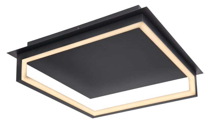 Deckenleuchte Metall schwarz, Acryl opal, weiß, LxBxH: 440x440x115mm, inkl. LED 30W 230V, 3000lm Source, 500lm Output, 4000K