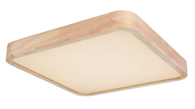 Deckenleuchte Metall weiß, Holz naturfarben, Kunststoff opal, Acrylkristalle klar, dimmbar, Farbwechsler, Farben fixierbar, Memoryfunktion, Nachtlicht, Fernbedienung, Batterie inkludiert 2x AAA, mit RGB Backlight, LxBxH: 400x400x105mm, inkl. LED 24W 230V, 1960lm Source, 960lm Output, CCT 3000-6000K, inkl. RGB LED 4W 230V