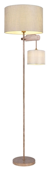 Stehleuchte Metall rostfarben, Holz naturfarben, Textil grau, Wippschalter am Kabel, Leselicht höhenverstellbar, LxBxH: 465x400x1650mm, Kabellänge 1800mm, exkl. 2x E27 40W 230V