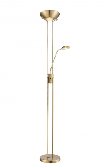 Globo LEONAS Deckenfluter messing matt, Glas, Leselicht Flexo, Kabel 1,8 m, dimmbar, Dimmer, D:255, H:1800, inkl. 1xLED 16W 20V, 1440lm, 3000K, 1xLED 4,5W 18V, 360lm, 3000K