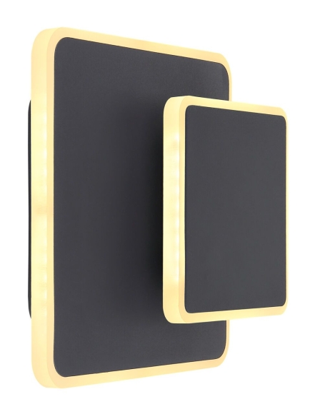 Wandleuchte Metall schwarz, Graphit, Acryl opal, kleines Quadrat drehbar, BxH: 200x170mm, AL: 55mm, inkl. LED 12W 230V, 1187lm Source, 634lm Output, 3000K