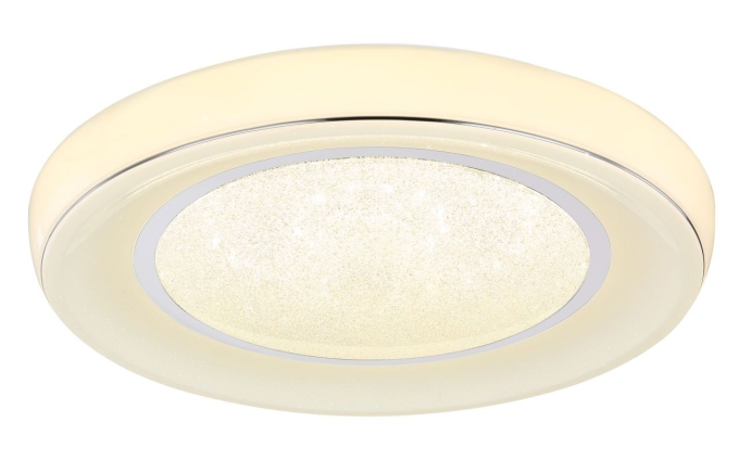 Die Deckenlampe aus der Serie Mickey lässt keine Wünsche offen. Der runde (Ø66cm) opale Lampenschirm sorgt mit den darin verfügbaren funkelnden Kunststoffkristallen für ein aufregenden Licht. Mit der inkludierten Fernbedienung können Sie einfach und bequem die Leuchte dimmen (max. 1950 Lumen) und die Lichtfarbe stufenweise von warmweißen 3000 Klevin bis zu kaltweißen 6000 Levin verstellen und fixieren.