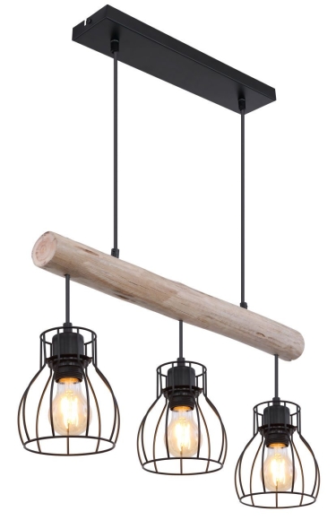 Diese Hängelampe der Serie Mina fügt sich durch ihr stilvolles Design aus schwarzem Metall und Holz wunderbar ins Ambiente verschiedenster Wohnstile. Sie besteht aus einem Holzstab, an dem drei schwarze Metallgitterschirme hängen. Diese können Sie mit E27-Leuchtmitteln Ihrer Wahl bestücken, wodurch Sie die Möglichkeit haben, Lichtfarbe und Helligkeit nach Ihren Vorstellungen zu bestimmen. Zudem kann die Höhe der 60 cm langen Hängeleuchte bei der Montage auf bis zu 140 cm angepasst werden. Durch mehrere Artikel der Mina-Serie können Sie das Gesamtbild in Ihren Innenbereich komplettieren.