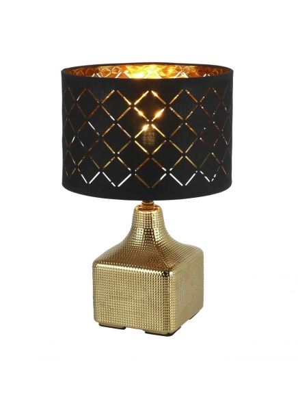 Globo MIRAUEA Tischleuchte Keramik goldfarben, Textil schwarz goldfarben, 1,5m Kabel, Schalter, D:250, H:380, exkl. 1xE27 60W 230V