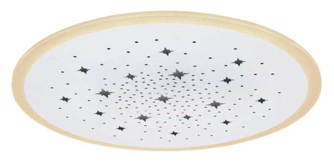 Deckenleuchte Metall weiß, Kunststoff weiß, dimmbar, Farbwechsler, Farben fixierbar, Memoryfunktion, Nachtlicht, Fernbedienung, Batterie inkludiert 2x AAA, Schirm mit Stern-Stanzungen, ø: 380mm, H: 50mm, inkl. LED 18W 230V, 1700lm Source, 1300lm Output, CCT 2700-6500K, inkl. RGB LED 4W 230V