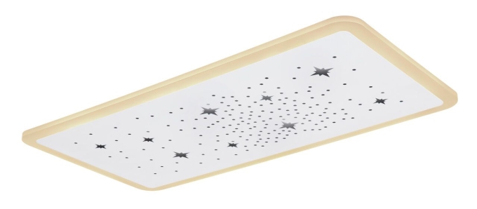 Deckenleuchte Metall weiß, Kunststoff weiß, dimmbar, Farbwechsler, Farben fixierbar, Memoryfunktion, Nachtlicht, Fernbedienung, Batterie inkludiert 2x AAA, Schirm mit Stern-Stanzungen, LxBxH: 600x300x50mm, inkl. LED 30W 230V, 2600lm Source, 2000lm Output, CCT 2700-6500K, inkl. RGB LED 6W 230V