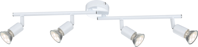 Ein schlichtes und dennoch überzeugendes Design besitzt dieser weiße Strahler. Die 58 cm lange Lampe besteht aus zwei Stangen welche beweglich sind. Insgesamt besitzt die Lampe vier Strahler mit einer GU10 Fassung die ein 1000 Lumen starkes und 3000K warmweißes Licht ausstrahlen. Ebenfalls lässt er sich sehr gut mit weiteren Produkten aus der gleichen Serie kombinieren und sie können somit das Bild in Ihrem Wohnraum komplettieren.