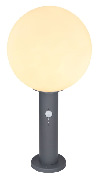 Außenleuchte Aluminium Druckguss anthrazit, Glas opal, weiß, Sensor inkl., IP44, ø: 250mm, H: 500mm, exkl. 1x E27 LED 15W 230V