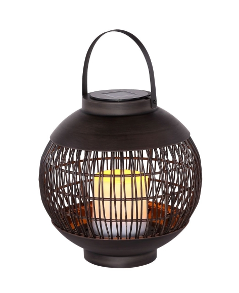 Solarleuchte Metall schwarz, Kunststoff schwarz, Kunststoff weiß, Schiebeschalter, Feuereffekt, Akku inkludiert AA 300mAh 1.2V, IP44, zum Hängen oder Stellen, ø: 219mm, H: 305mm, inkl. LED 0.02W 1.2V, 3000K, gelb