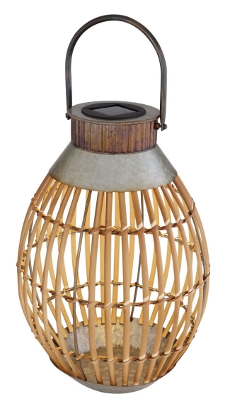 Diese formschöne Solarlampe aus Bambus (ø 27 cm) eignet sich wunderbar für Ihren Garten, Ihre Terrasse oder Ihren Balkon. Die 37,5 cm große Solarleuchte kann sowohl in hängender als auch in stehender Position bewundert werden. Das angenehm warmweiße Licht (3000 Kelvin) des solarbetriebenen LED-Leuchtmittels scheint von innen durch die Bambuselemente, wodurch ein wunderschönes Muster projiziert wird. Mit dieser Solarleuchte können Sie in Ihren Außenbereich für eine stimmungsvolle Atmosphäre sorgen.
