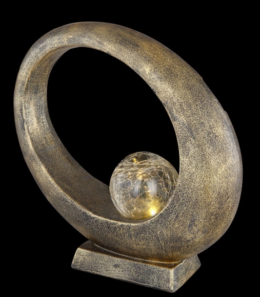 Solarleuchte Kunststoff goldfarben, Glas crackle, klar, Akku inkludiert AAA 300mAh 1.2V, Skulptur oval, LxBxH: 325x108x320mm, inkl. LED 0.06W 3V, 3000K