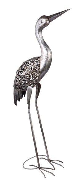 Solarleuchte Metall grau, antik antik, Akku inkludiert AA 300mAh 1.2V, IP44, Kranich, LxBxH: 290x150x770mm, inkl. LED 0.06W 3V, 3000K