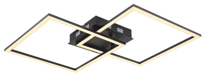 Deckenleuchte Metall schwarz matt, Kunststoff opal, weiß, LxBxH: 470x470x58mm, inkl. LED 36W 230V, 3700lm Source, 2700lm Output, 3000K