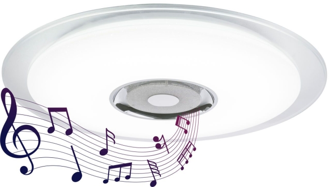 Hochwertige K5 Kristalle und dezentes Sparkle Dekor am opalen Acrylglas lassen diese Deckenleuchte funkeln. Mit ihrem stattlichen Durchmesser von 60cm kommt sie in großen Räumen besonders gut zur Geltung. Vor allem aber punktet Tune mit einer Reihe faszinierender Zusatzfeatures. Sie ist mit einem leistungsstarken Lautsprecher ausgestattet, der via Bluetooth Verbindung Musik vom Smartphone abspielt. Mit der eigens entwickelten App lassen sich auch Lichtfarbe und Helligkeit der Leuchte vom Smartphone aus steuern. Die leistungsstarken RGBW LEDs können alle Spektralfarben wiedergeben und erzeugen aber auch weißes Licht in unterschiedlicher Intensität und Farbtemperatur. Die Leuchte wird mit Fernbedienung ausgeliefert, die den vollen Funktionsumfang der Smartphone App erfüllt.