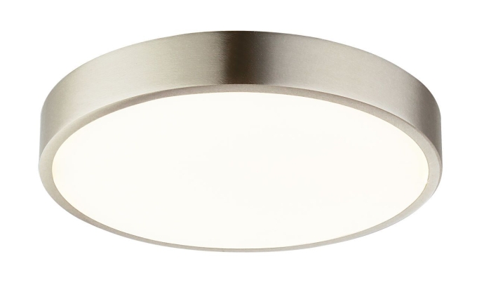 Diese schlicht wirkende Deckenleuchte (Ø22cm) der Serie VITOS überzeugt vor allem durch ihre Funktionalitäten. Das sich in der Mitte befindende opale Acrylglas wird umrandet von einem nickel matten Aluminium Druckgußrand. Die bis zu 2520 Lumen dimmbare Lampe verfügt über ein inkludiertes 28 Watt LED Leuchtmittel und gibt mit neutral weißem 4000 Kelvin eine angenehme Lichtfarbe. Durch weitere Modelle dieser Serie können Sie das Bild Ihres Wohnraumes weiter verschönern.