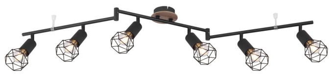 Strahler Metall schwarz, Holz braun, Metall schwarz, beweglich, LxBxH: 1160x100x245mm, exkl. 6x E14 40W 230V