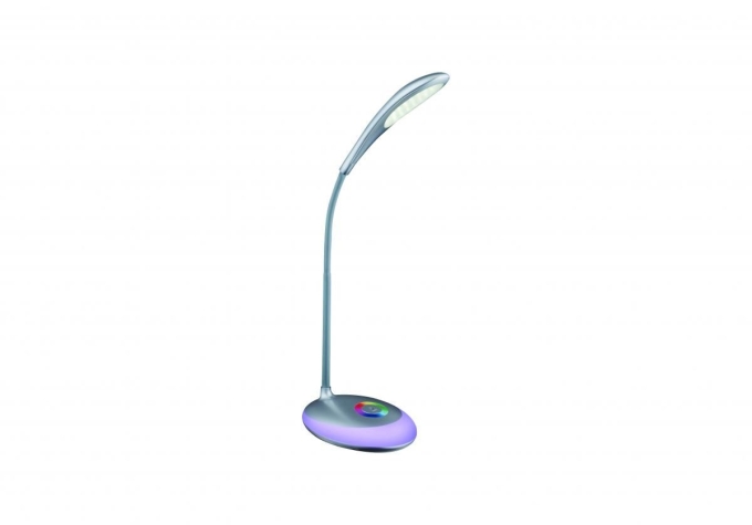 Globo MINEA Tischleuchte Kunststoff silber metallic, Kunststoff satiniert, Flexo mit Kunststoff überzogen, Sockel mit RGB LED, Farbwechsler, Farben fixierbar, Touchdimmer, LxBxH:300x110x480, inkl. 1xLED 3W 5V, 230lm, 5000K, 1xRGB LED 1,4W 3,2V
