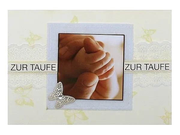 Herzliche Glückwünsche zur Taufe Die Klappkarte für die Glückwünsche zur Taufe mit von Papas Hand gehaltener Babyhand sieht edel aus und bietet genug Platz für ein paar nette, persönliche Zeilen. Der Text innen lautet: "Ganz herzliche Glück- und Segenswünsche". Über Grußkarten anlässlich der Taufe eines Babys freuen sich alle Eltern. Die Freude über das Neugeborene könnte kaum deutlicher ausgedrückt werden, als mit einem Geschenk und einer passenden Grußkarte. Besonders auf Klappkarten, wie sie Sie in vielfältiger Art und Weise hier im 1a-Geschenkeshop finden, ist reichlich Platz für persönliche Glückwünsche.   Karten für Glückwünsche zur Taufe aus dem 1a-Geschenkeshop Mit Grußkarten können die Glückwünsche zur Taufe dauerhaft aufbewahrt werden.  Es sind "handfeste" Gratulationen, die sich Eltern und Kind später gern wieder her nehmen und sich gerne an diese besondere Zeit direkt nach der Geburt und an das Fest der Taufe erinnern. Im Vergleich zu Grußkarten, die elektronisch versendet werden, kann man "echte" Grußkarten mit Glückwünschen zur Taufe zu Hause aufstellen und hat sie so immer vor Augen. Wir bieten Ihnen Grußkarten zur Taufe für jeden Geschmack, sowie für Jungen und Mädchen. Ein ansprechendes Design spielt bei den persönlichen Grüßen immer eine Rolle. Es ist wie bei einer Hochzeitskarte ganz wichtig, dass die "Aufmachung" zum festlichen Anlass - zur Taufe - passt. Karten mit Glückwünschen zur Taufe werden häufig in einer größeren Stückzahl benötigt. Wer hat schon Zeit und Geschick genug, diese selbst zu basteln? Kaufen Sie diese Grußkarten, sowie Einladungskarten und Danksagungskarten deshalb bei uns im 1a-Geschenkeshop und legen Sie die eine oder andere  Geburtstagskarte  mit in den Warenkorb. Ein passendes Geschenk und die Grußkarten zusammen sparen Porto und Aufwand. Da Sie Karten mit Ihren ganz persönlichen Glückwünschen zur Geburt oder zur Taufe immer selbst beschriften, wirken Sie beim Empfänger letztendlich doch persönlich und individuell. Bunt und fröhlich dürfen die Karten mit Ihren Grüßen wirken. Edel und seriös sehen zum Beispiel die Hochzeitskarten aus. Für offizielle und private Gelegenheiten finden Sie garantiert die richtige Grußkarte.  Dankeskarten  sind zum Beispiel auch eine sehr schöne Möglichkeit, mit jemandem eine Beziehung zu pflegen. Egal, ob diese Grußkarte als Dank für die Geschenke nach einem Fest versendet wird, oder ob die Dankeskarte jemanden zwischendurch erreicht, dem man einfach einmal von ganzem Herzen "Danke" sagen möchte. So haben Geburtstagskarten, Glückwunschkarten und Dankeskarten je Ihre ganz eigene Bedeutung. Unsere Grußkarten sind im Gegensatz zu den Grußkarten, die in so manchem Ladengeschäft erhältlich sind, weder altmodisch noch kitschig und da es sich um Klappkarten handelt, haben Sie genügend Platz für persönliche Zeilen. Auch ein Foto oder ein Geldschein findet in den Grußskarten Platz. Es gehört ein weißer Briefumschlag zu jeder Karte dazu.
