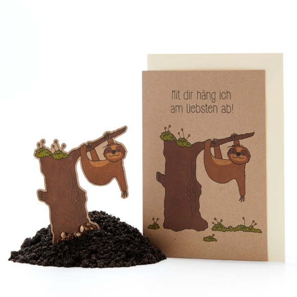 Grußkarte Faultier "Mit dir häng ich am liebsten ab" I Geburtstagskarte beste Freundin I Karte mit hochwertigem Saatgut - Die Stadtgärtner