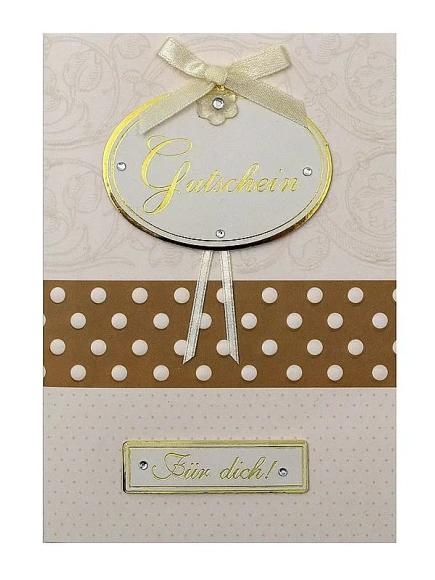 Grußkarte als Klappkarte mit Aufschrift Der Gutschein gehört in eine anständige Grußkarte. Dafür bieten wir Ihnen diese stilvolle Klappkarte an. Außen ist der Text:  "Gutschein - Für dich!" zu lesen. Innen steht:  "Viel Spaß beim Einlösen!". Zur Grußkarte gehört ein weißer Briefumschlag.  Grußkarten aus unserem Geschenkeshop für jede Gelegenheit Über Grußkarten freut sich jeder, auch wenn sie ein bisschen aus der Mode gekommen zu sein scheinen. Es sind "handfeste" Danksagungen oder Einladungen. Denn im Vergleich zu Grußkarten, die elektronisch versendet werden, kann man Klappkarten als Grußkarten zu Hause oder im Büro aufstellen und hat sie so immer vor Augen. Wir bieten Ihnen Grußkarten für jeden Geschmack. Denn ein ansprechendes Design spielt bei den persönlichen Grüßen immer eine Rolle. Für eine Hochzeitskarte zum Beispiel ist es ganz besonders wichtig, das die "Aufmachung" der Grußkarte zu diesem äußerst festlichen Anlass passt. Einladungskarten werden häufig in einer größeren Stückzahl benötigt. Wer hat schon Zeit und Geschick genug, diese selbst zu basteln? Kaufen Sie Einladungskarten und Grußkarten deshalb bei uns im Geschenkeshop mit. Das Geschenk und die Grußkarten zusammen in einem Warenkorb sparen Porto und Aufwand. Da Sie Grußkarten immer selbst beschriften, wirken Sie beim Empfänger letztendlich doch persönlich und individuell. Bunt und fröhlich dürfen die Geburtstagskarten mit Ihren Grüßen wirken, edel und seriös sehen die Hochzeitskarten aus. Für offizielle und private Gelegenheiten finden Sie garantiert die richtige Grußkarte.  Dankeskarten sind zum Beispiel auch eine sehr schöne Möglichkeit, mit jemandem eine Beziehung zu pflegen. Egal, ob diese Grußkarte als Dank für die Geschenke nach einem Fest versendet wird, oder ob die Dankeskarte jemanden zwischendurch erreicht, dem man einfach einmal von ganzem Herzen "Danke" sagen möchte. Unsere Grußkarten sind im Gegensatz zu den Grußkarten, die in so manchem Ladengeschäft erhältlich sind, weder altmodisch noch kitschig und da es sich um Klappkarten handelt, haben Sie genügend Platz für persönliche Zeilen. Auch ein Foto oder ein Geldschein findet in den Grußkarten Platz.