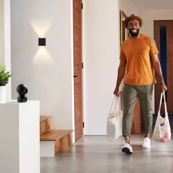 Ganz ohne Gateway per App steuerbar: Smarte Indoor-Kamera WLAN von Hama mit Bewegungssensor und 2-Wege-Audio-System, schwenk- und neigbar, Full-HD, SD-Slot Die Überwachungskamera WLAN von Hama für den Innenbereich kann aufgestellt oder auch an der Wand beziehungsweise an der Decke angebracht werden. Sie ist um 355 Grad schwenkbar, der Kopf lässt sich zudem um 50° vertikal neigen. Neben einem Bewegungssensor sind auch ein Mikrofon sowie ein Lautsprecher verbaut. Daher reagiert sie auf Wunsch auch auf Geräusche und ist zusätzlich beispielsweise als Babyphone nutzbar. Für die Einbindung ist keine Bridge/Gateway nötig. Stattdessen kann sie direkt per WLAN-Verbindung mit der kostenfreien Hama Smart Home App auf dem Smartphone/Tablet gesteuert werden. Auch die Steuerung mit Sprachbefehlen ist möglich. So kann man das Videobild live über die App abrufen und auch das Aufzeichnen ist möglich. Einerseits funktioniert letzteres über die Cloud (kostenpflichtig) oder mittels SD-Karte (max. 128 GB, nicht enthalten). Diese Smart-Home-Kamera nimmt Videos in Full-HD-Qualität auf und sorgt auch im Dunklen dank Nachtsichtmodus für klare Infrarot-Aufnahmen. Zur Stromversorgung liegen ein USB-Kabel sowie ein passendes Netzteil bei. In Verbindung mit der smarten Alarmsirene von Hama (siehe Zubehör) lässt sich der Funktionsumfang noch erweitern. Auch das automatische Schalten von smarten Leuchten sowie Leuchten und weiteren Haushaltsgeräten mit Stecker via smarter Steckdosen (siehe Zubehör) ist möglich. Technische Merkmale / Kompatibilität: - direkt und ohne Gateway per App und mit Sprachbefehlen steuerbar - kostenlose App für iOS und Android - Sprachsteuerung mit Amazon Alexa, Google Assistant und Apple Siri (Shortcuts) möglich - kombinierbar mit vielen weiteren Smart-Home-Komponenten von Hama (siehe Zubehör) - Videoaufnahme in Full-HD-Qualität - Timer per App einstellbar - Schwenkbar (355°) und neigbar (50°) - Erfassungswinkel Sensor: 105° - inklusive USB-C-Kabel und Steckernetzteil Besonderheiten: - mit 2-Wege-Audio-System (als Babyphone nutzbar) - Bewegungssensor und Geräuscherkennung integriert - konfigurierbare Bewegungserkennung, sodass die Ansprache ausschließlich auf menschliche Bewegungen erfolgt - Videoaufzeichnung via SD-Karte (max. 128 GB, nicht enthalten) oder Cloud (kostenpflichtig) - Nachtsichtfunktion - Datenspeicherung ausschließlich auf deutschen Servern
